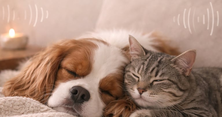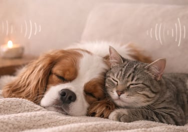 Special curated audio and frequency tracks designed to soothe emotion and support grounding for both pets and people.