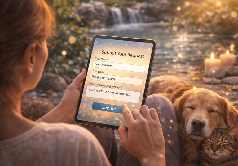 This is spiritual support only. No outcomes are promised. Not a substitute for licensed medical or veterinary care, and we do not make medical claims.